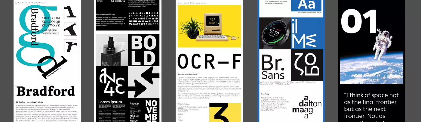 En automne 2025, une nouvelle série de 15 spécimens typographiques est réalisée. Chaque spécimen est décliné aux formats newsletter, réseaux sociaux et écrans d’information. Cette nouvelle série débutera prochainement sa diffusion durant l’hiver 2025-2026.